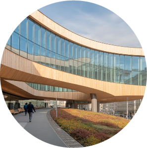 CLT-Konstruktionen - Cross Laminated Timber revolutioniert den Holzbau. Stark wie Beton, leicht wie Holz: Kreuzweise verleimte Massivholzplatten ermöglichen auch Hochhäuser aus Holz und verkürzen die Bauzeit um bis zu 50%.